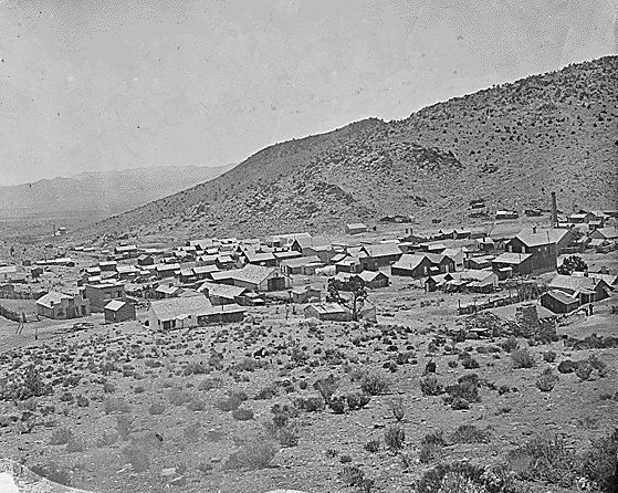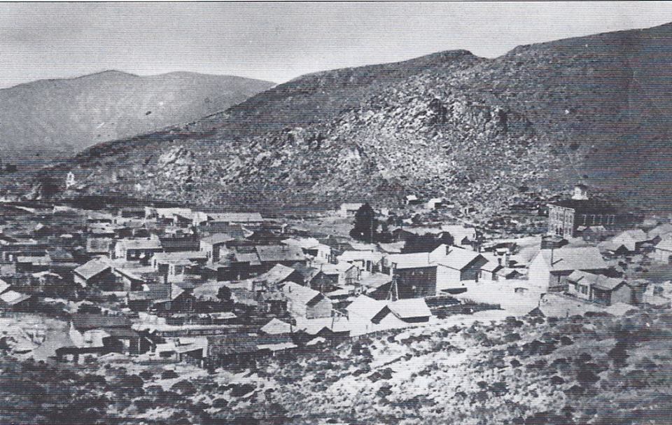 Subject: Birdseye view in 1871. During the 1870s it was known as a major mining boomtown producing silver, and was rumored to have a population of 15,000.