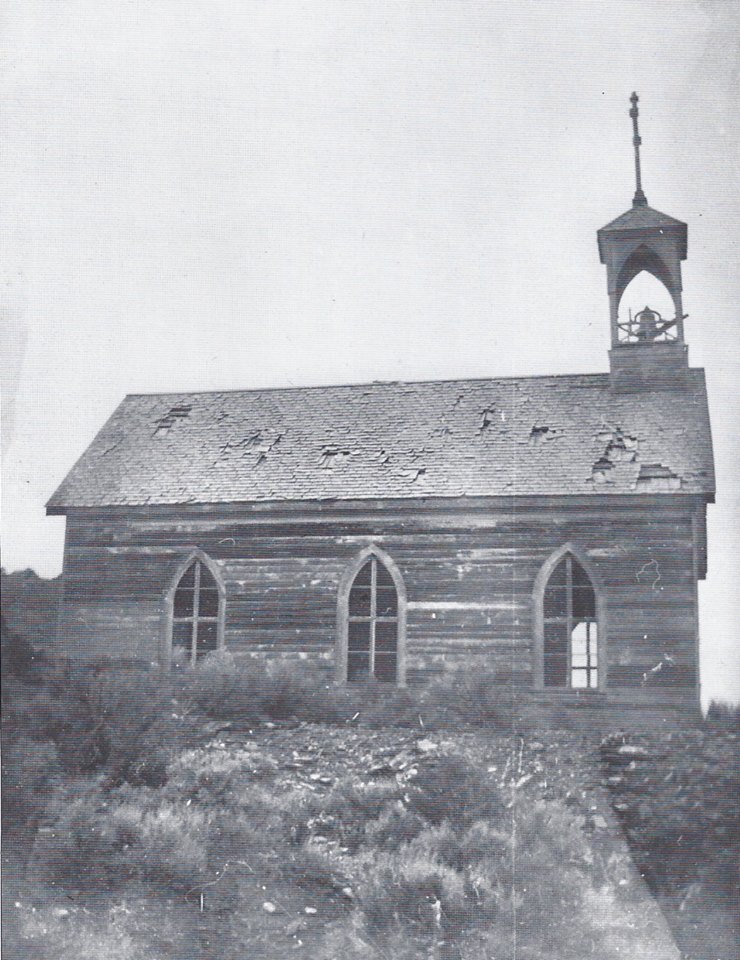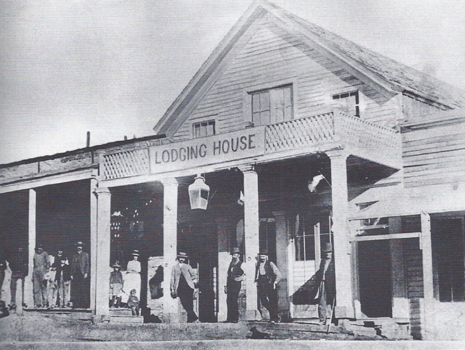 Subject: A group of locals posing at the entrance. Notice the plywood in the upper windows. Building was abandoned in 1904.