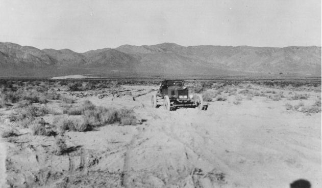 Subject: Road located near the Oasis Ranch in Fish Lake Valley, Nevada. The automobile is a 1914 Ford purchased by J. Irving Crowell,