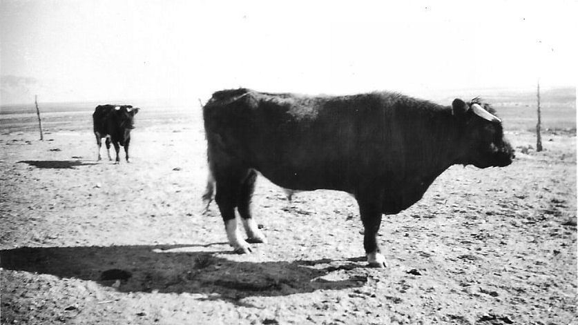 Subject: Titus-Locke Ranch, Moore's Station, Hot Creek Valley - Young shorthorn bull used as sire in