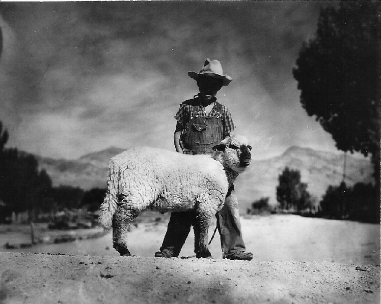 Subject: Titus-Locke Ranch, Moore's Station, Hot Creek Valley - David Locke (6 yrs. old) with lamb which he is feeding for