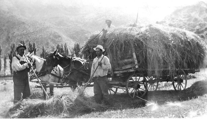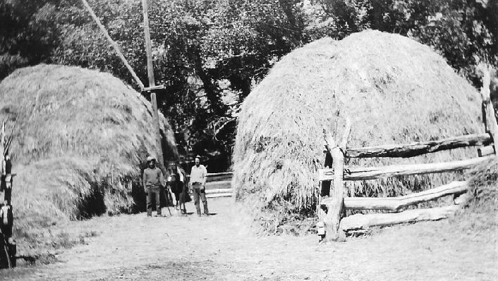 Subject: - New alfalfa and wild hay is stacks on Ornelas Ranch. Aug. 19 '43, First cutting. Bonney Ornelas and Melvin