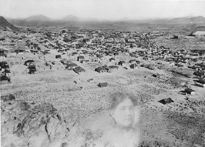 Subject: Early shot of Tonopah, Nevada. the woman is unidentified.