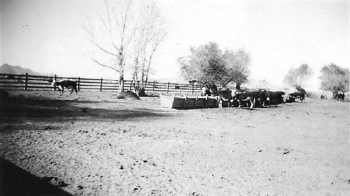 lot and large pasture at the Pahrump Ranch. Ground alfalfa hay, and concentrate are being feed daily to these well bred