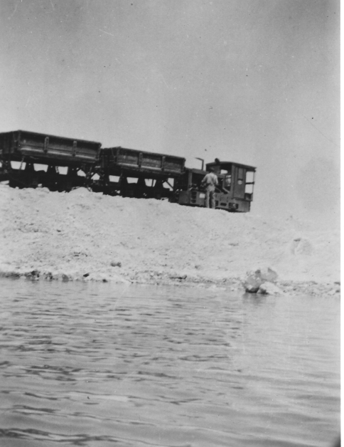 dragline operator; Jess Toles, mechanic and driver of the narrow gauge train; Jack Pardee, dump man; Mac McKinna, miner.