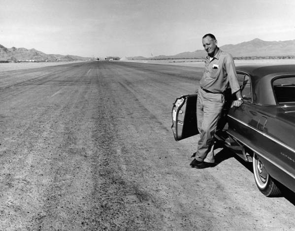 Walt Williams beside the airstrip located on the Pahrump Ranch, Pahrump, Nevada, circa 1960. Courtesy Mark Williams.