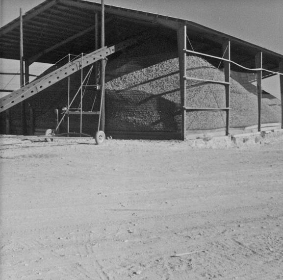 Cubed alfalfa stored under a shelter, Pahrump Ranch, circa 1968. Courtesy Mark Williams.