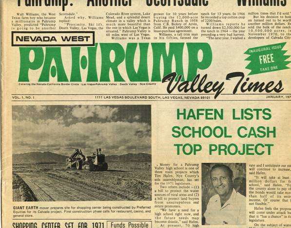 Inaugural Issue, Pahrump Valley Times, 1975. Courtesy Mark Williams.